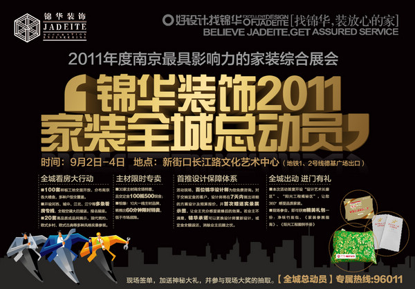 作為南京最具影響力、設(shè)計力量最為強大的裝飾公司,錦華擁有著一批優(yōu)秀的設(shè)計師,他們有豐富的設(shè)計經(jīng)驗,有優(yōu)秀的設(shè)計作品。在本次展會上,不僅有10多套精品樣板房全城開放,讓您可以親身體驗好設(shè)計的魅力;更有前所未有的“設(shè)計巡展”,100多套獲得國內(nèi)外設(shè)計大獎的作品;萬科、中海的精品樣板房設(shè)計揭秘;更有造價高達(dá)400萬元以上的高端家裝設(shè)計展示。