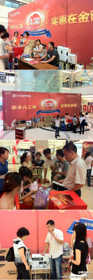 820日上午1000開始,錦華裝飾VIP客戶專場團購會在金陵國際家居隆重舉行!本次活動是錦華裝飾首次與合作主材商家聯盟團購的活動,由眾多的戰略合作商鼎力支持,各主材聯盟商均有針對錦華團購客戶最大程度的優惠。在團購活動的八個小時期間,超過150戶業主前來參加,現場訂單更是近400單。活動現場共設置了六個獎項,在活動當場均已花落各位幸運的業主。同時,錦華裝飾協同參與商家共同組織了優秀設計師和錦華材料員陪同業主訪店、品牌經理駐店接待、現場解析,提升了消費體驗,為活動現場的業主們提供了更多針對性服務。