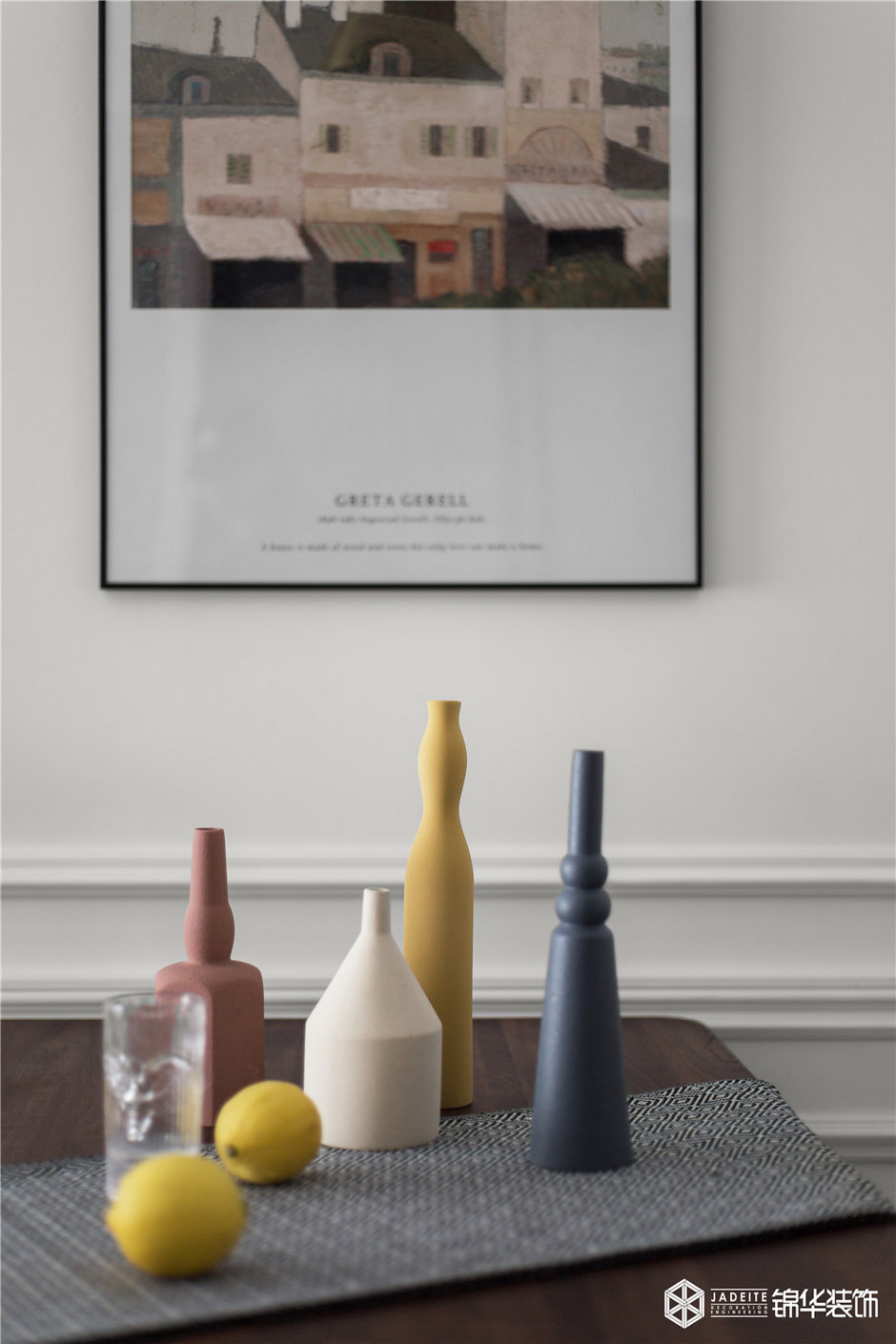 以pu線條代替造價(jià)甚高的護(hù)墻板,將其直接貼于墻面,增加了空間的層次感,其余的地方則是用不同色彩的墻紙?bào)w現(xiàn)空間的活潑性,呈現(xiàn)出空間本身的質(zhì)感與美感,白色和灰色的組合又使得整個(gè)空間安靜又舒適。