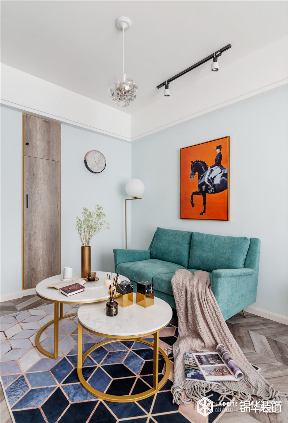 ▲因面積有限,所以客廳統(tǒng)一采用小體積家具,避免視線上的壓抑。不同顏色、材質(zhì)、造型的和諧碰撞,使得空間更立體,更有層次關(guān)系。