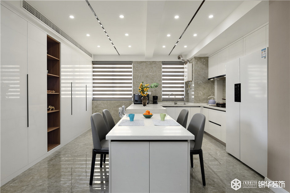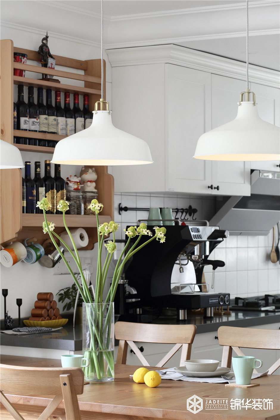 ▲吧臺(tái)將餐廳區(qū)域與廚房區(qū)域隔而不斷,讓空間呈現(xiàn)出不同的層次感,沒(méi)有過(guò)多阻擋,廚房的光線更加明亮!