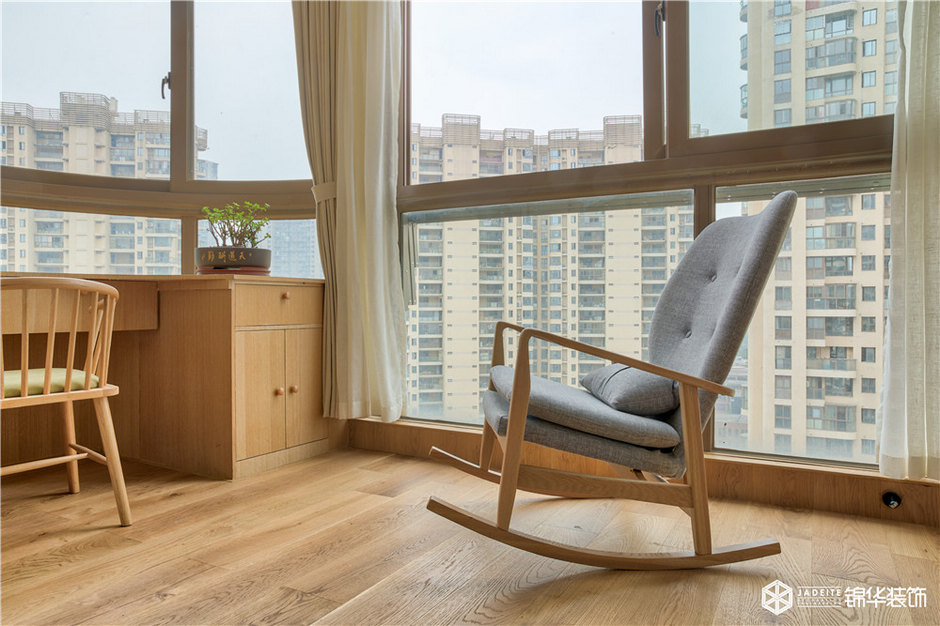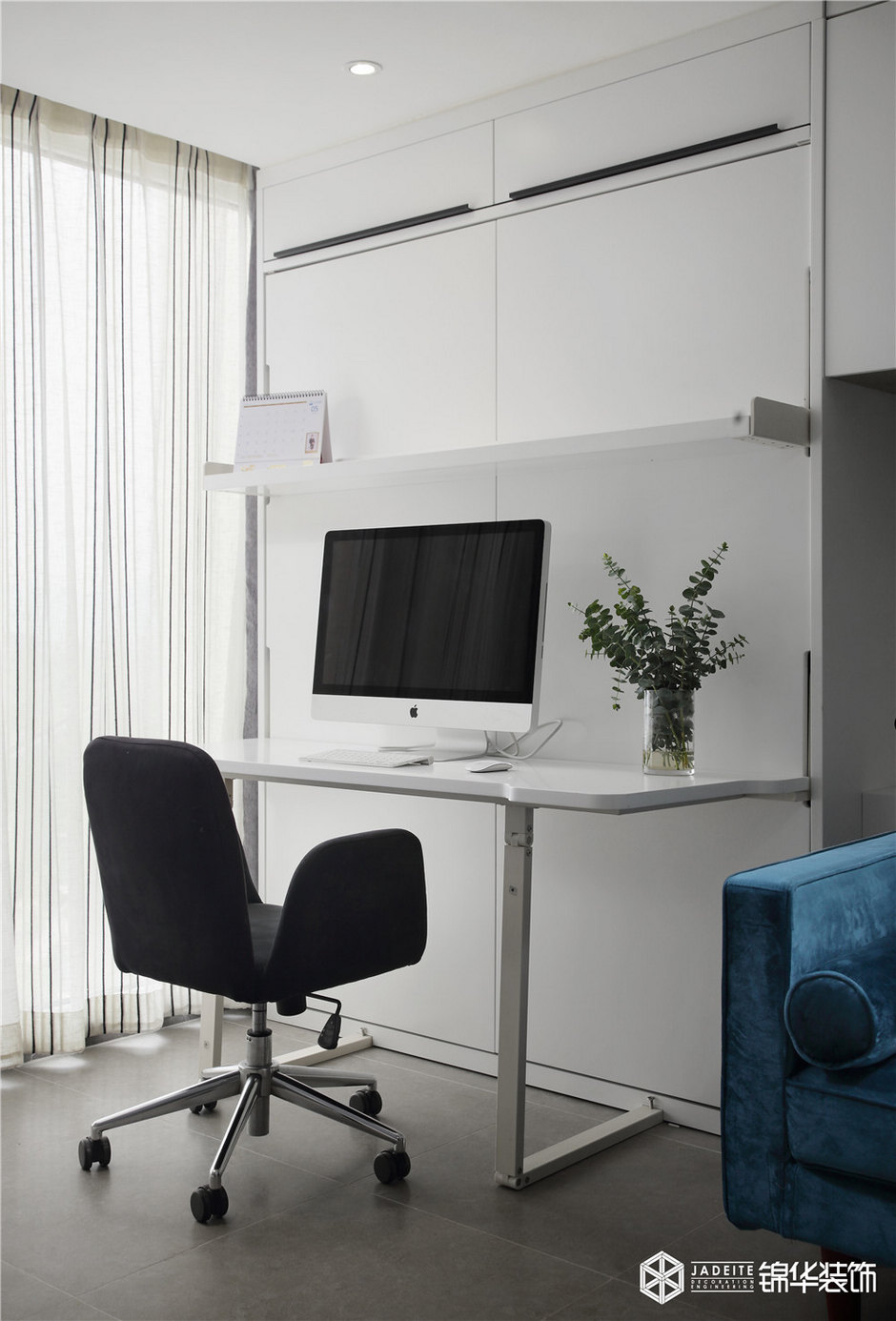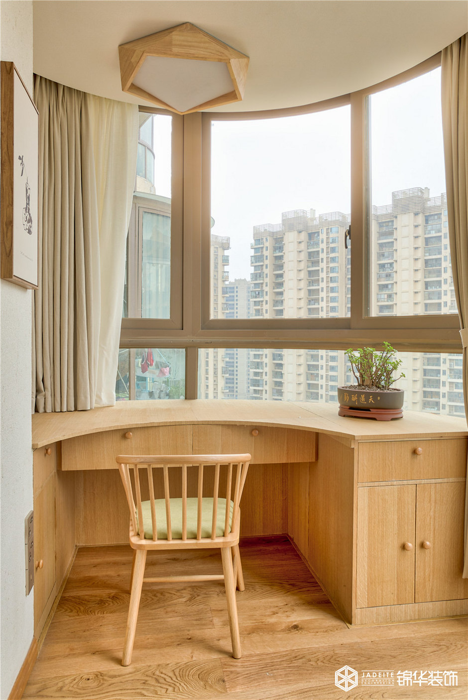 ▲陽(yáng)臺(tái)制作了擱架書(shū)桌,業(yè)主偶爾回家時(shí),在臥室也能滿足看書(shū)或辦公的需要!