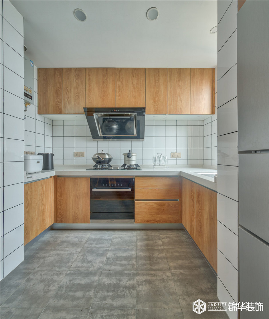 ▲廚房外圍墻體砸掉,開(kāi)放式廚房增加空間和亮度!