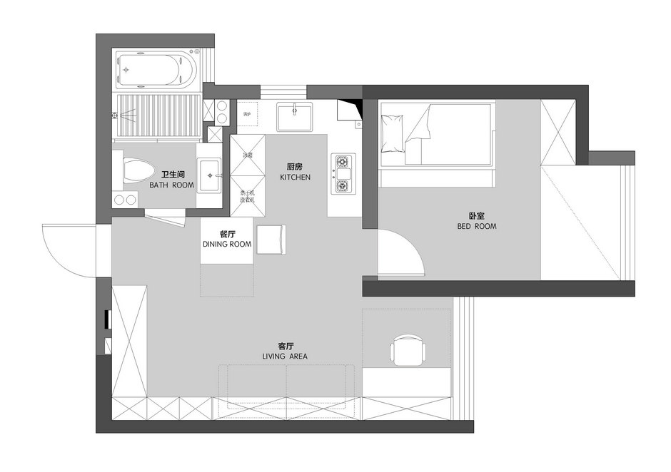 ▲客廳區(qū)域整體內(nèi)縮,改造出一個(gè)落地式陽(yáng)臺(tái)!