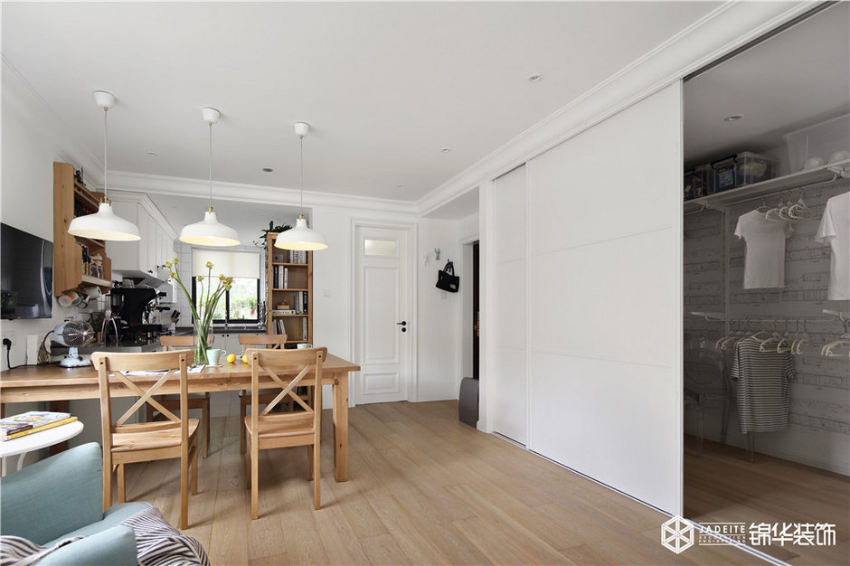 考慮到戶型南北通透,采光較好,在空間中沒(méi)有做特別大的改造變動(dòng),而是在儲(chǔ)藏等功能上做了不少改動(dòng)。