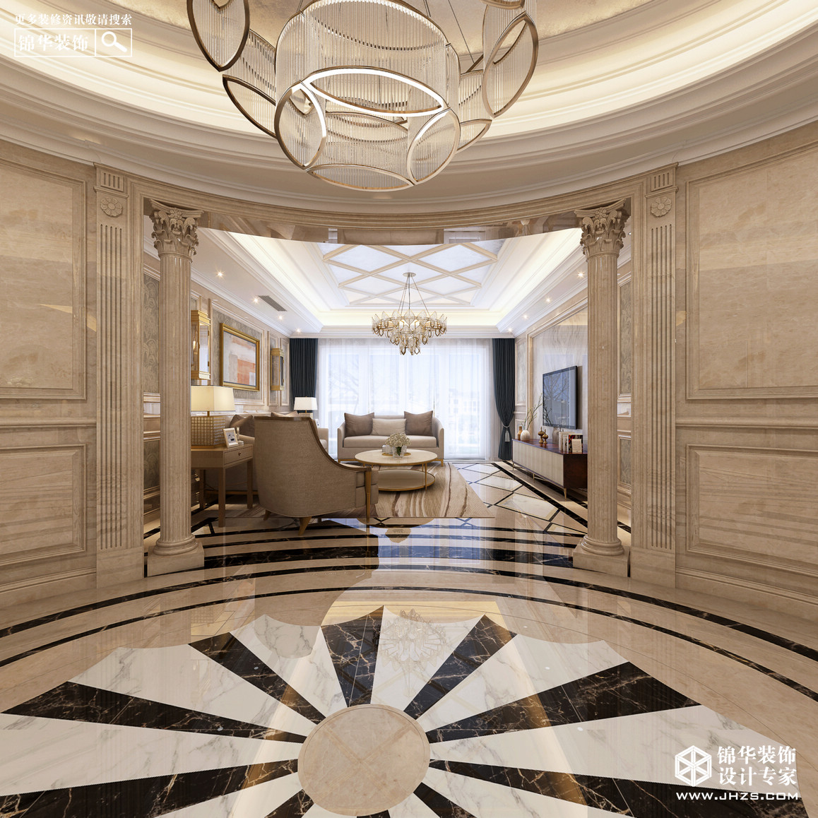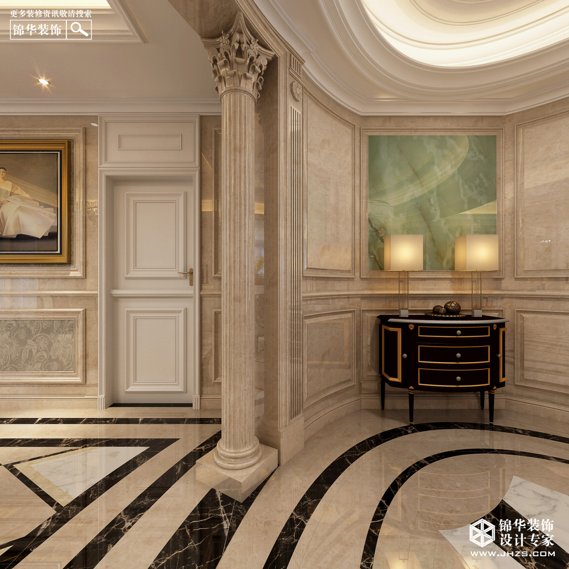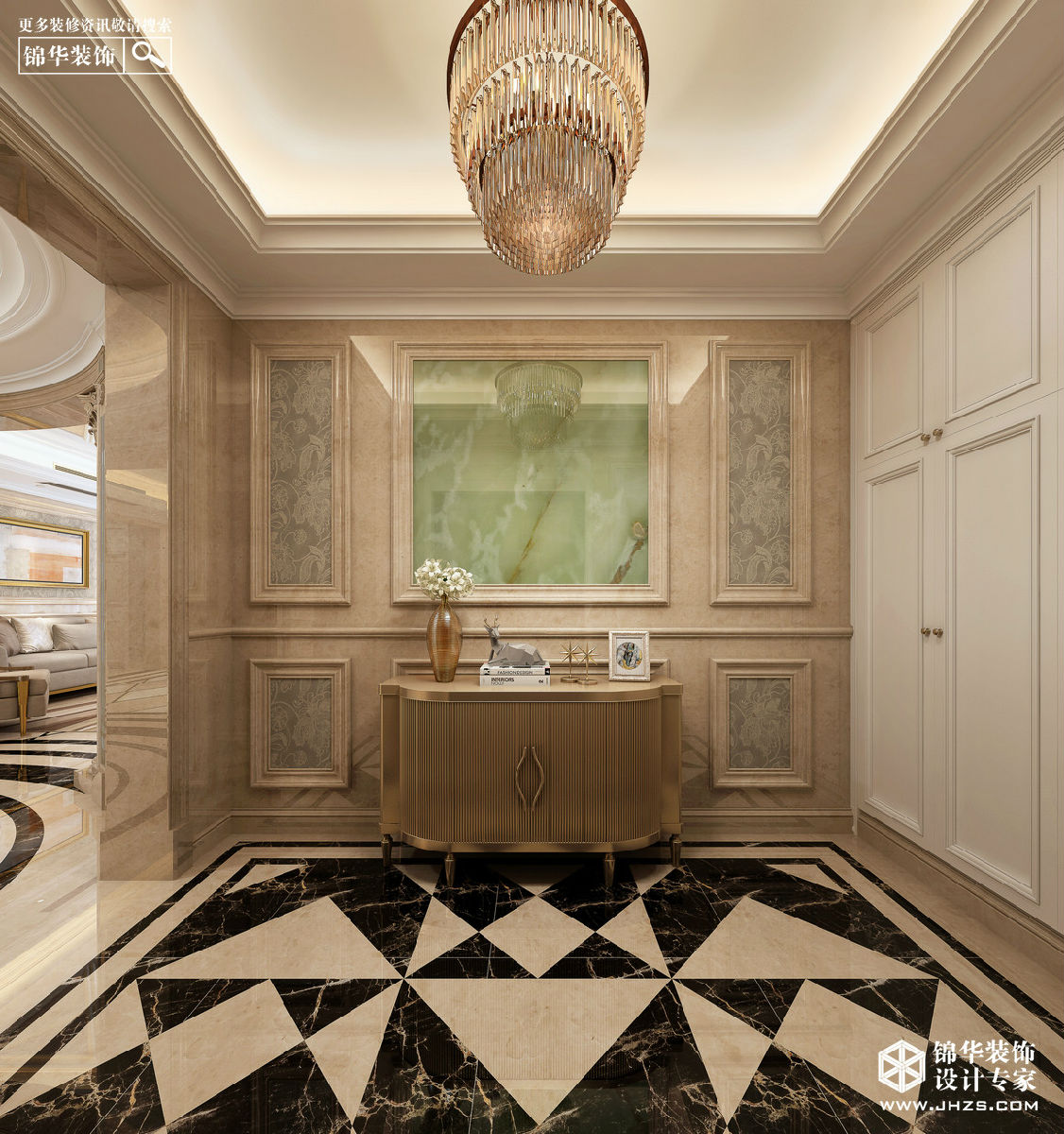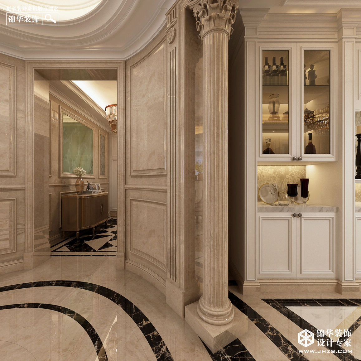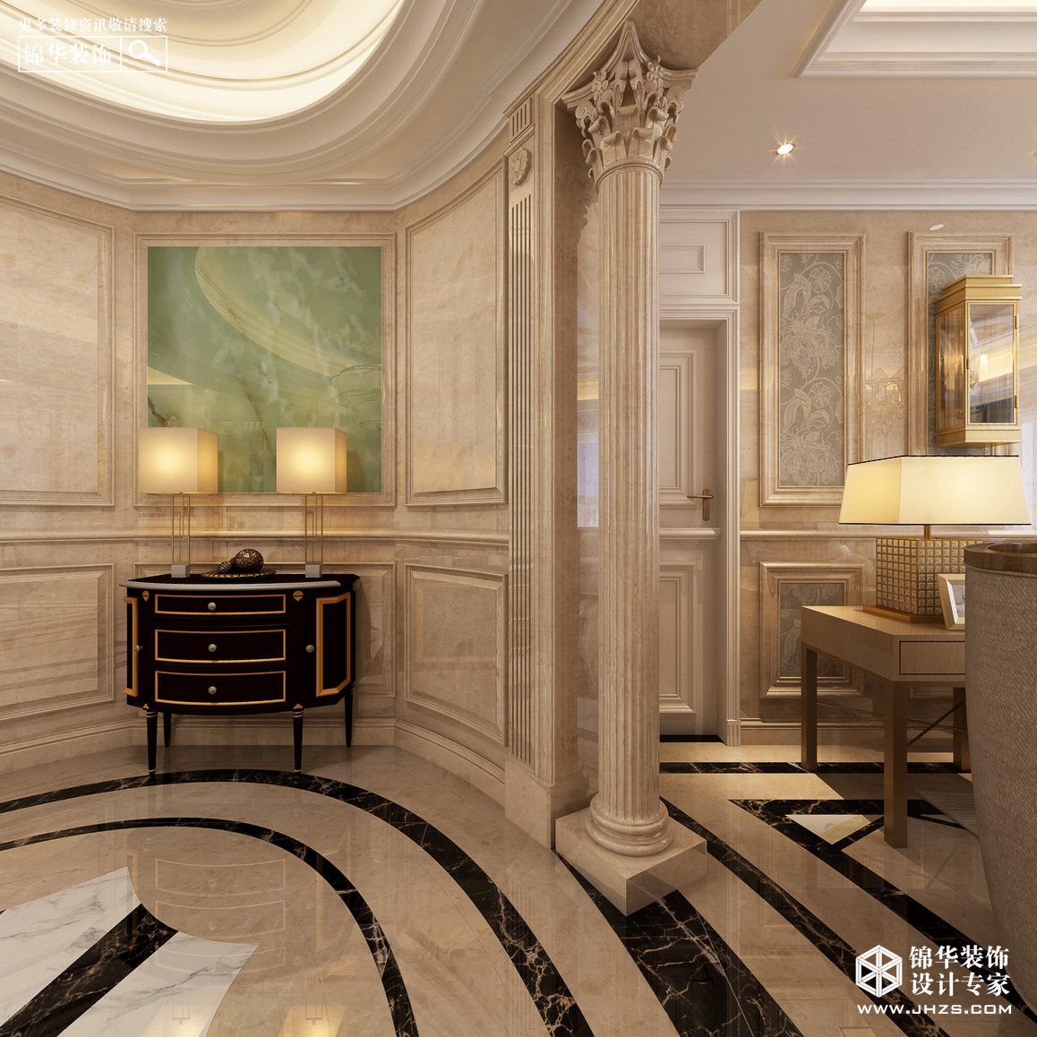 設(shè)計說明:本案作品將浪漫優(yōu)雅的歐式和古典的法式精美的結(jié)合在一起。業(yè)主是位追求完美的人,喜歡歐式的羅馬柱和石材,所以設(shè)計師根據(jù)業(yè)主的想法也在一些細節(jié)方面做了精致的處理,從簡單到復(fù)雜、從整體到局部,精雕細琢,使各個空間的過度都顯得非常自然和諧。搭配歐式的家具,讓空間兼容華貴典雅與時尚現(xiàn)代,米黃色的整體色調(diào),無不彰顯著生活的富足安寧和業(yè)主對品質(zhì)生活的向往與追求。